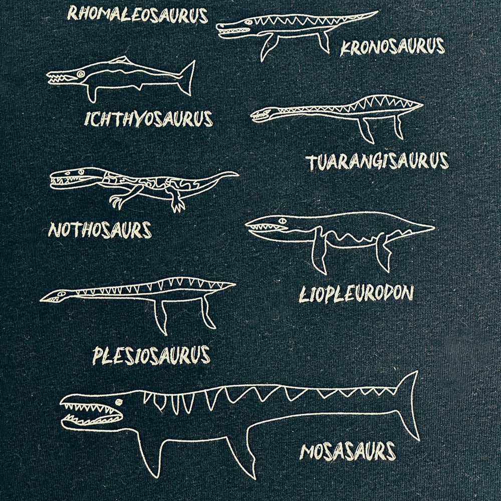 The oceans of the past come alive with our "Marine Reptiles" long-sleeved youth shirt. This design features hand-drawn line illustrations of real prehistoric marine reptiles—from Mosasaurus to Plesiosaurus—making it the perfect top for cooler days and curious minds. Ideal for budding marine biologists, dinosaur fans, and underwater adventurers.